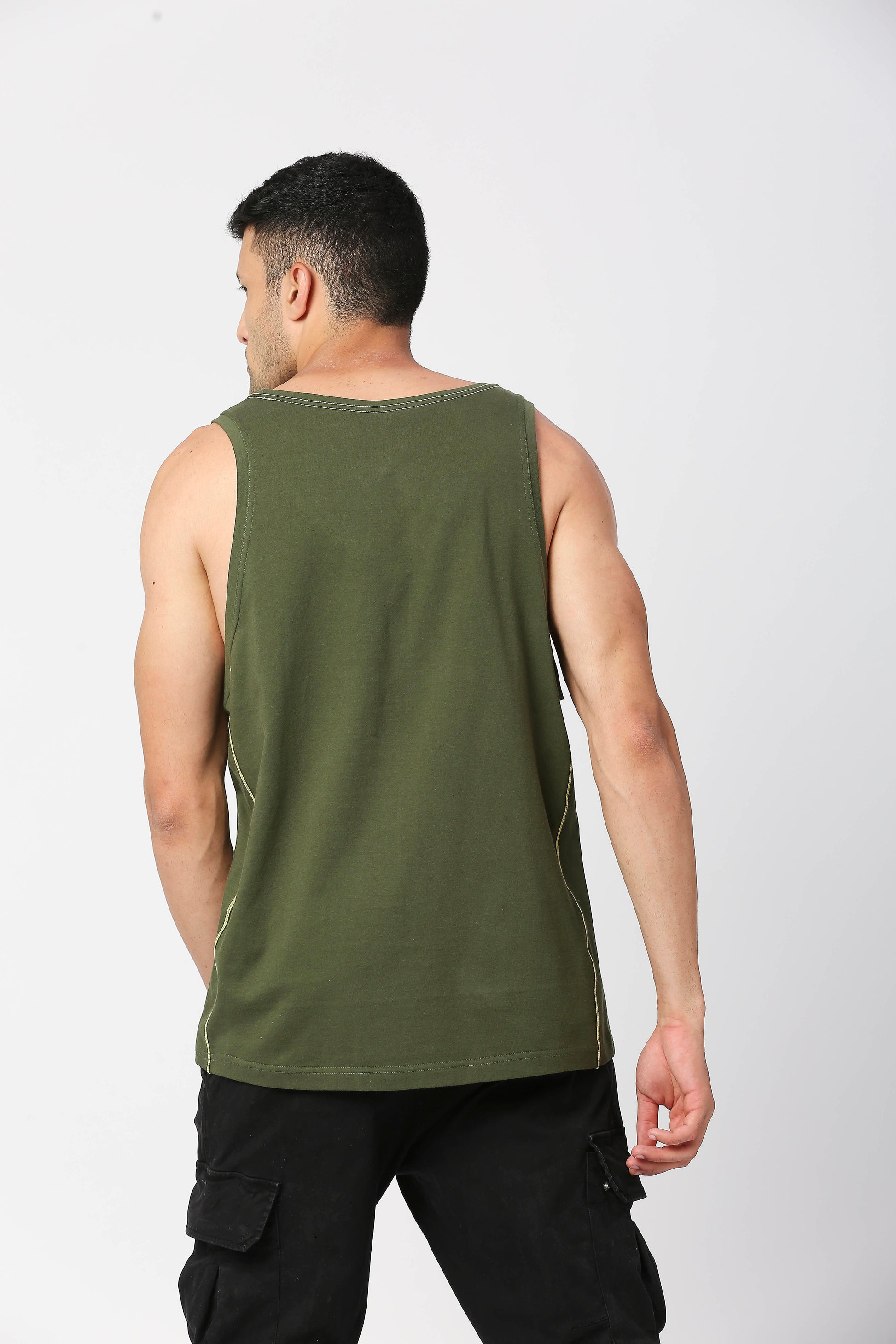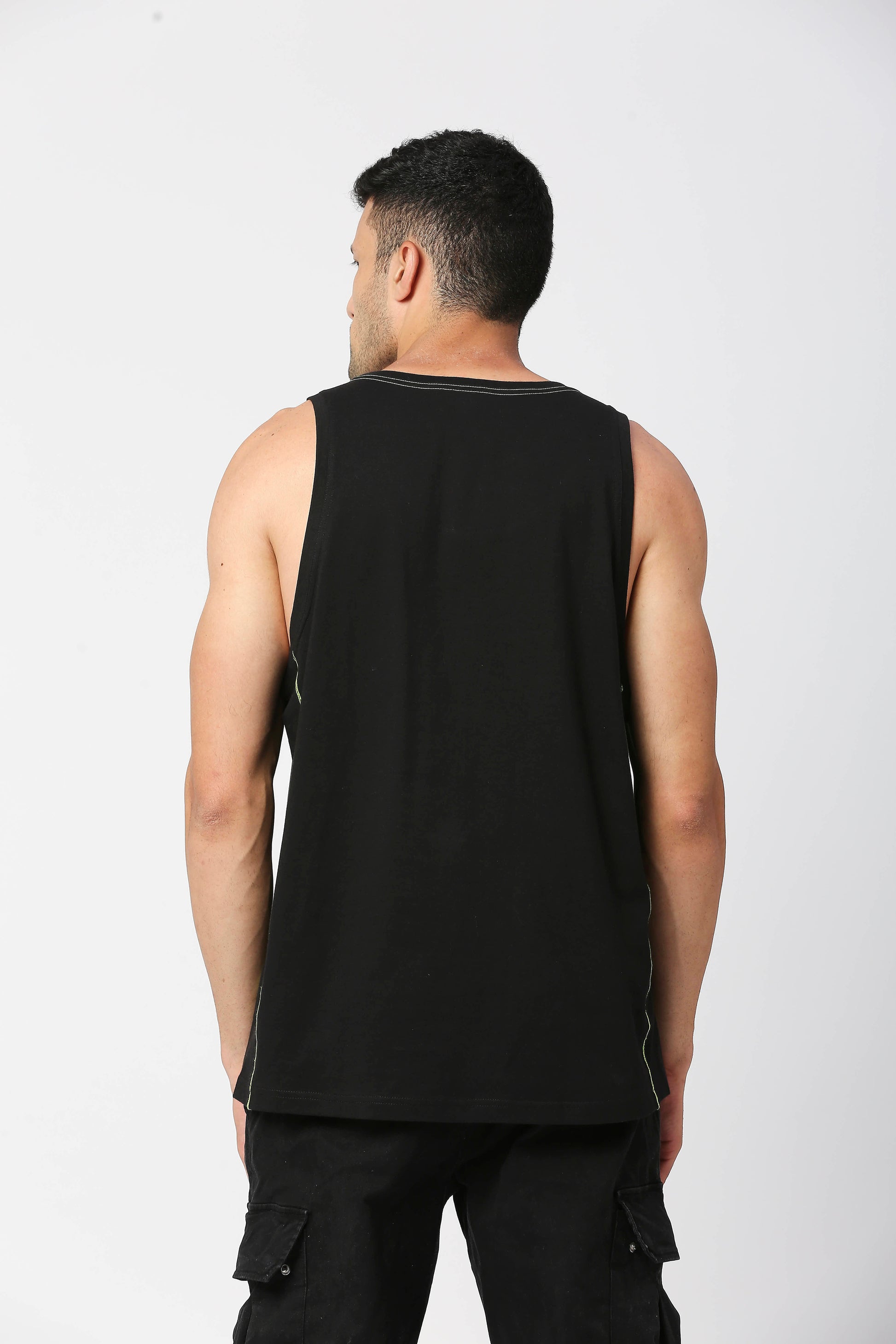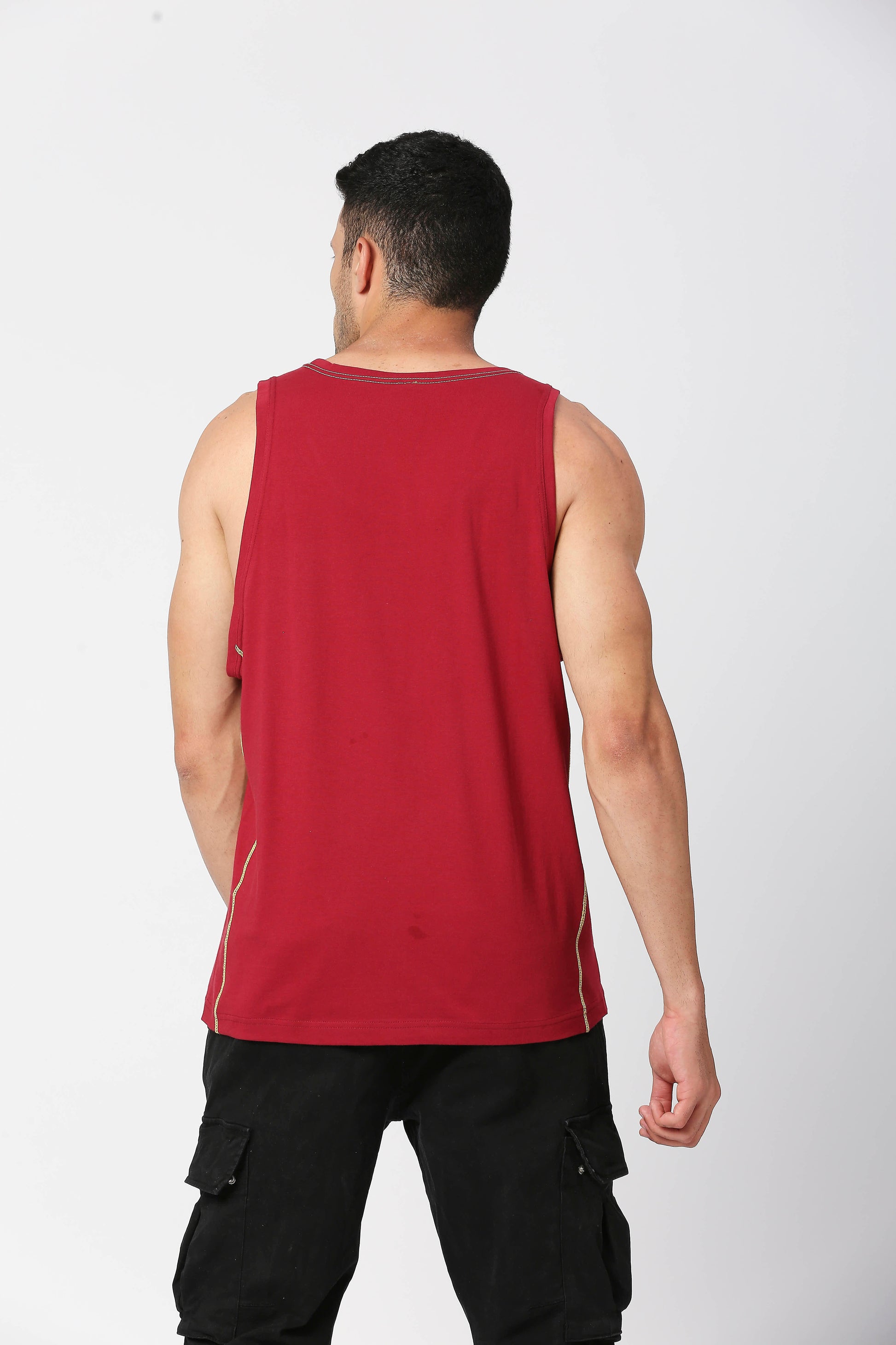 But that's not all, my friend. This tank is made to last with its top-notch quality. It's crafted from 180 gsm premium cotton fabric, which means it's super soft and comfortable to wear. The stitching on this bad boy is top-notch too, with five threads holding it all together, ensuring durability and keeping you looking fresh for a long time.